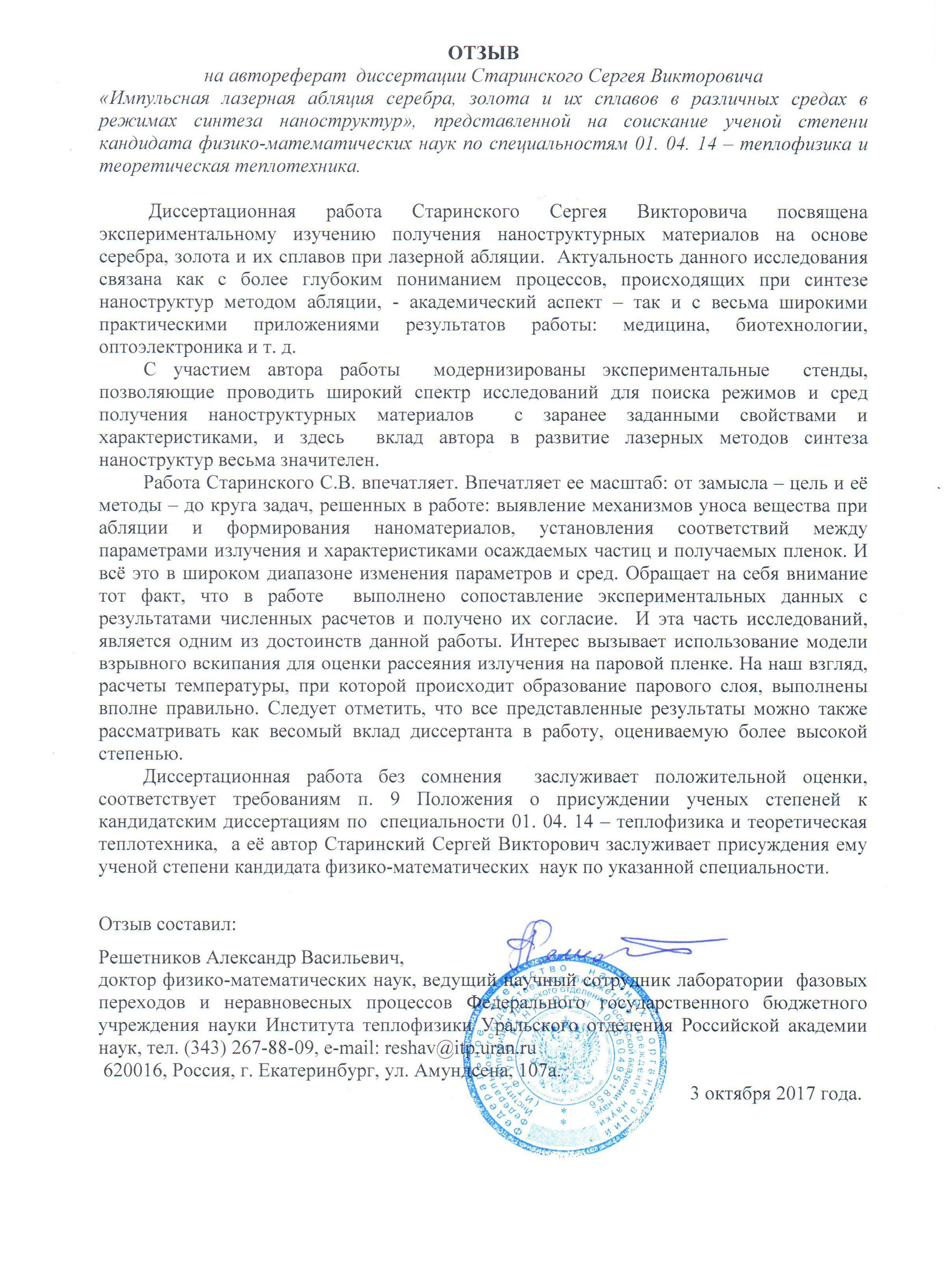 Отзывы на автореферат