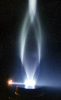 Визуализация течения за кольцевым сверхзвуковым соплом с помощью электронного пучка. |