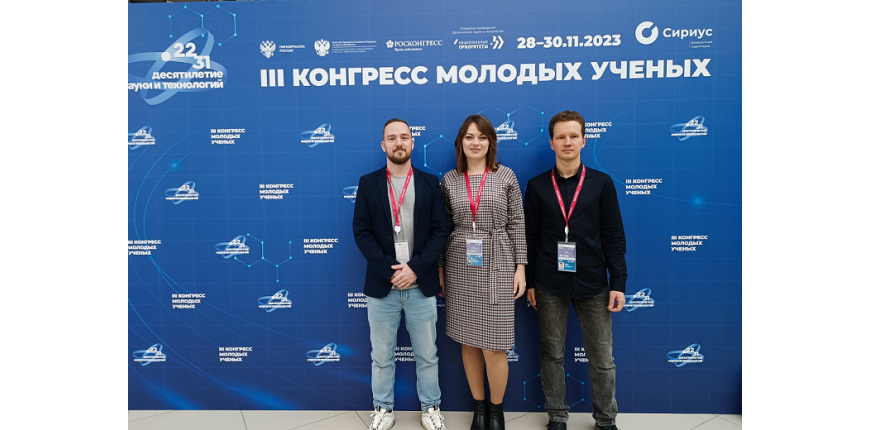 От в III Конгрессе молодых ученых принимают участие Вожаков Иван Сергеевич, Ягодницына Анна Александровна, Роньшин Федор Валерьевич (на фото).