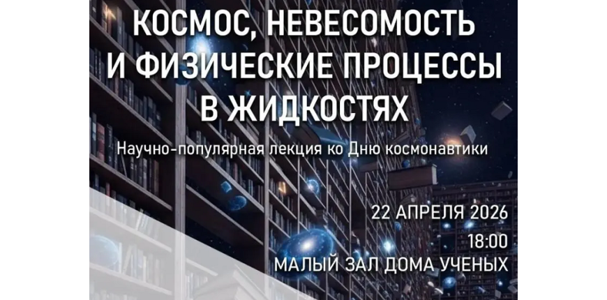 По информации Дома ученых СО РАН 22 апреля 2026 года в 18 часов в Малом зале начнется приуроченная ко Дню космонавтики научно-популярная лекция «Космос, невесомость и физические процессы в жидкостях».