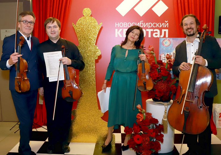 На главном фото: академик РАН Сергей Алексеенко, главный редактор журнала Leaders Today Ольга Зонова, директор ГПНТБ СО РАН, доктор исторических наук Ирина Лизунова, художественный руководитель квартета Filarmonica, народный артист России Валерий Карчагин.