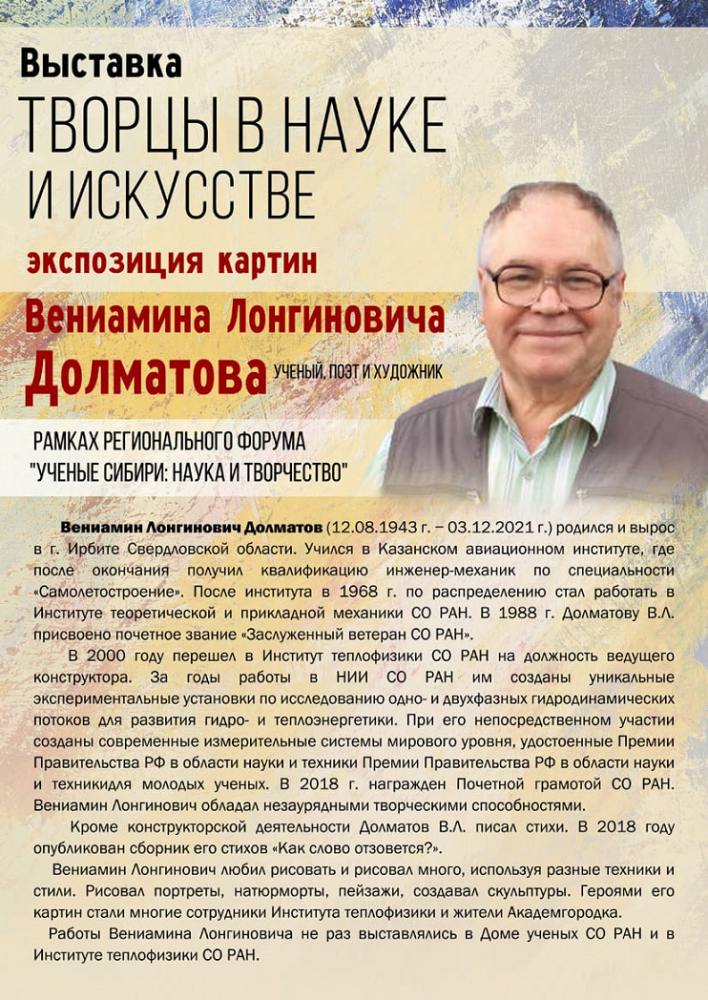 и ушедшего из жизни 3 декабря 2021 года ведущего конструктора Института теплофизики им. С.С. Кутателадзе СО РАН Долматова Вениамина Лонгиновича