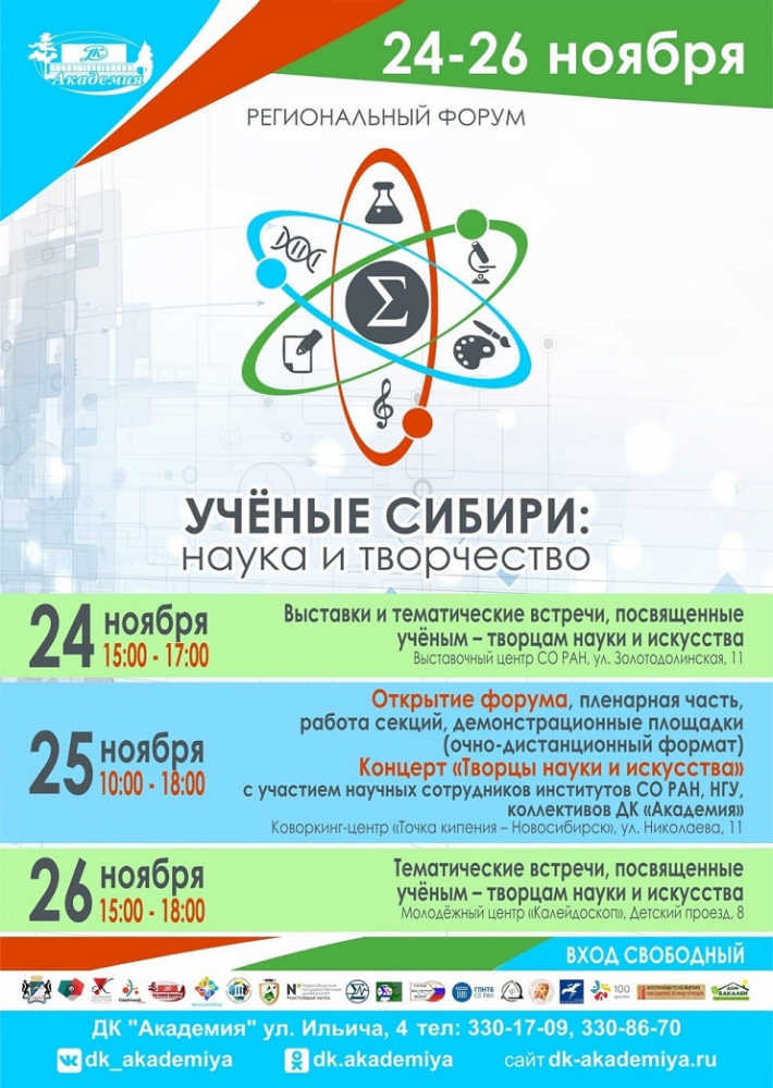 24-26 ноября 2022 г. в Новосибирском Академгородке состоится третий Региональный форум «Ученые Сибири: наука и творчество», посвященный празднованию 65-летия Сибирского Отделения Российской Академии Наук (СО РАН).
