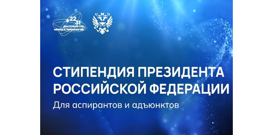 Минобрнауки России объявлен конкурсный отбор 2026 года на назначение стипендии Президента Российской Федерации для аспирантов и адъюнктов, обучающихся по очной форме обучения в российских организациях, осуществляющих образовательную деятельность и проводящих научные исследования в рамках реализации приоритетов научно технологического развития Российской Федерации, определенных в Стратегии научно-технологического развития РФ.
