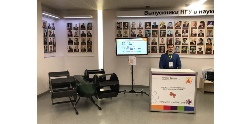 Выставочная экспозиция Института теплофизики на научно-производственном форруме «Золотая долина» была представлена демонстратором беспилотного летательного аппарата вертикального взлета и посадки с циклическими движителями «Циклолет» и презентацией актуальных разработок института.
