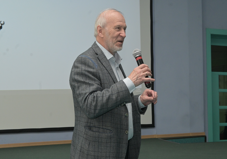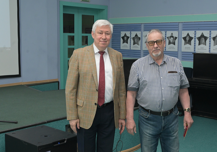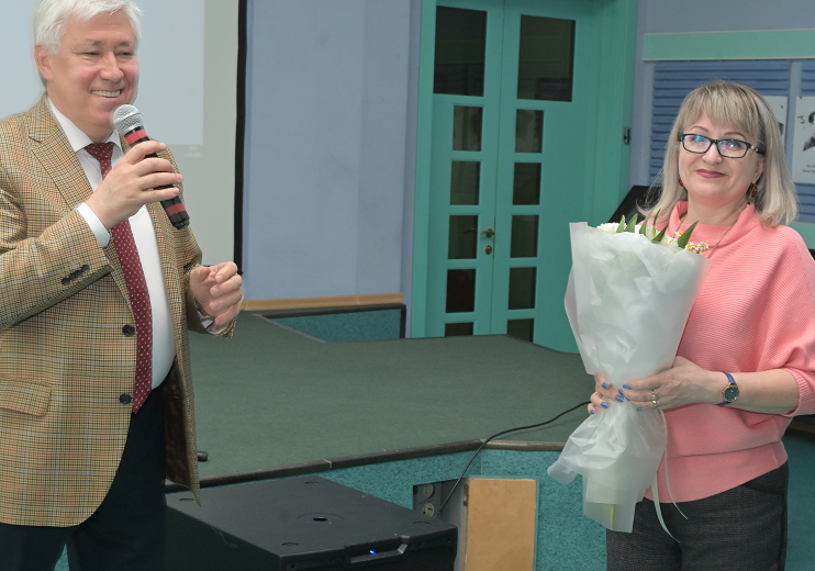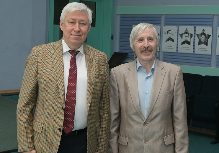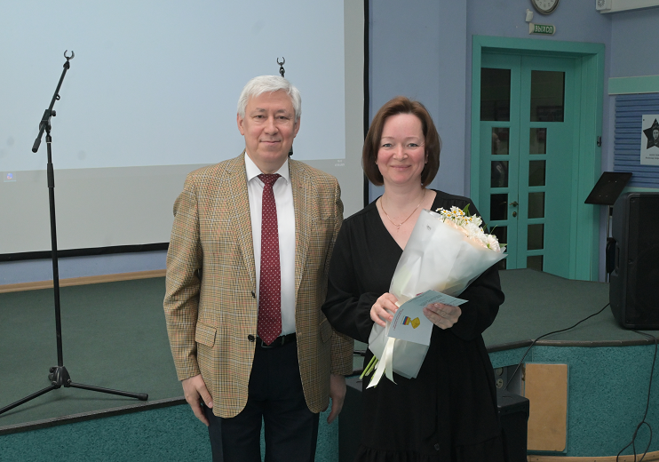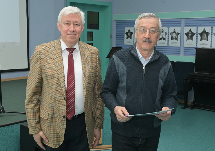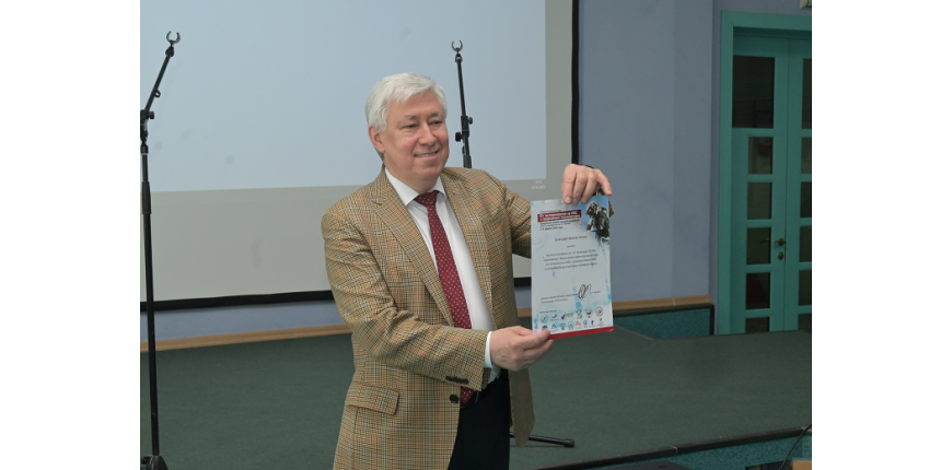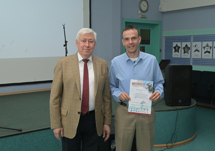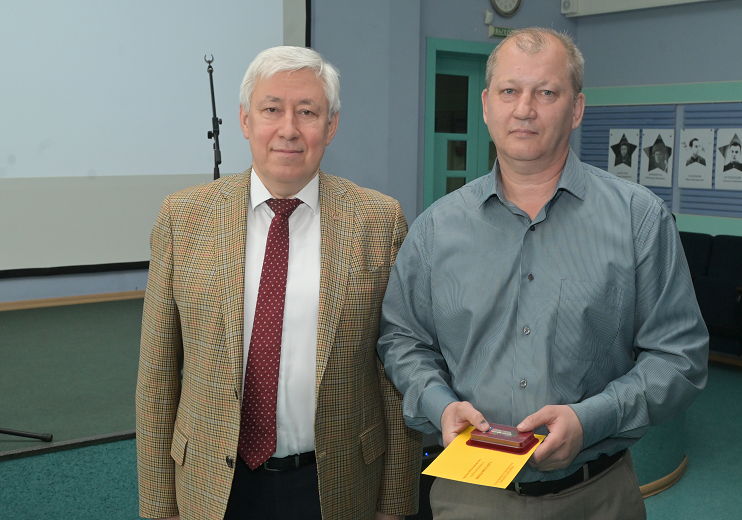 Дмитрий Маркович вручил благодарственные письма Оргкомитета II Недели космической науки «От экспериментов МКС к прорывным технологиям» заместителю директора по науке, к.ф.м.н. Сиковскому Дмитрию Филипповичу, заведующему