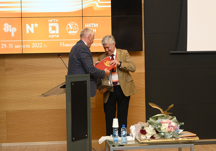 Директор ИСЭ СО РАН г. Томск, доктор физико-математических наук Романченко Илья Викторович и научный руководитель ИСЭ СО РАН г. Томск, академик РАН, доктор физико-математических наук Ратахин Николай Александрович тепло поздравили с юбилеем и отметили огромное количество научных экспериментов проходящих ежедневно в Институте теплофизики.