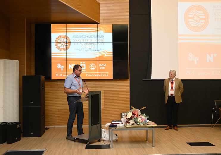 XXXVIII Сибирский теплофизический семинар - всероссийская конференция с международным участием и элементами научной школы для молодых ученых, посвящённый 65-летию Института теплофизики им. С.С.Кутателадзе СО РАН. Поздравить Интстиут теплофизики приехали руководители научных и академических институтов из разных городов России, глава СО РАН и представители администрации Советского района г. Новосибирска.