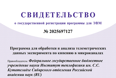 23 декабря 2025 г. в Реестре программ для ЭВМ зарегистрирована "Программа для обработки и анализа телеметрических данных эксперимента по кипению в микроканалах"