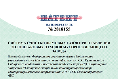 24 апреля 2024 г. в Государственном реестре изобретений зарегистрировано изобретение " Система очистки дымовых газов при плавлении золошлаковых отходов мусоросжигающего завода"