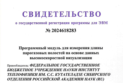 10 апреля 2024 г. в Реестре программ для ЭВМ зарегистрирован "Программный модуль для измерения длины парогазовых полостей на основе данных высокоскоростной визуализации"