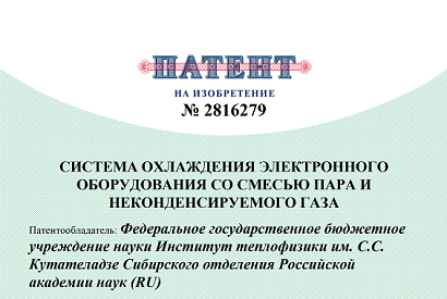 28 марта 2024 г. в Государственном реестре изобретений зарегистрировано изобретение " Система охлаждения электронного оборудования со смесью пара и неконденсируемого газа"