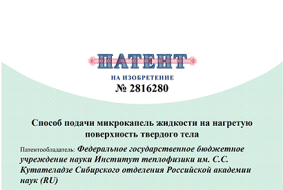 28 марта 2024 г. в Государственном реестре изобретений зарегистрировано изобретение "Способ подачи микрокапель жидкости на нагретую поверхность твердого тела"