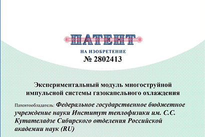 28 августа 2023 г. в Государственном реестре изобретений зарегистрировано изобретение "Экспериментальный модуль многоструйной импульсной системы газокапельного охлаждения"