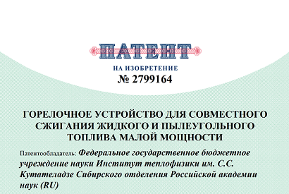 04 июля 2023 г. в Государственном реестре изобретений зарегистрировано изобретение "Горелочное устройство для совместного сжигания жидкого и пылеугольного топлива малой мощности"