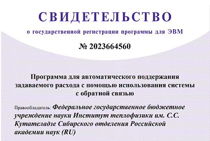 05 июля 2023 г. в Реестре программ для ЭВМ зарегистрирована "Программа для автоматического поддержания задаваемого расхода с помощью использования системы с обратной связью"