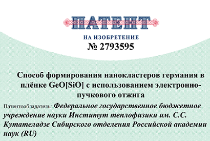 04 апреля 2023 г. в Государственном реестре изобретений зарегистрировано изобретение "Способ формирования нанокластеров германия в плёнке GeO[SiO2] с использованием электронно-пучкового отжига"