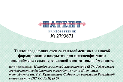04 апреля 2023 г. в Государственном реестре изобретений зарегистрировано изобретение "Теплопередающая стенка теплообменника и способ формирования покрытия для интенсификации теплообмена теплопередающей стенки теплообменника"