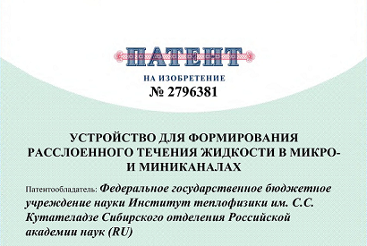 22 мая 2023 г. в Государственном реестре изобретений зарегистрировано изобретение "Устройство для формирования расслоенного течения жидкости в микро- и миниканалах"