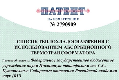 28 февраля 2023 г. в Государственном реестре изобретений зарегистрировано изобретение "Способ теплохладоснабжения с использованием абсорбционного термотрансформатора"