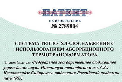 10 февраля 2023 г. в Государственном реестре изобретений зарегистрировано изобретение "Система тепло-хладоснабжения с использованием абсорбционного термотрансформатора"