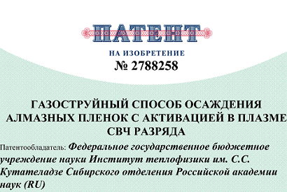 17 января 2023 г. в Государственном реестре изобретений зарегистрировано изобретение "Газоструйный способ осаждения алмазных пленок с активацией в плазме СВЧ разряда"