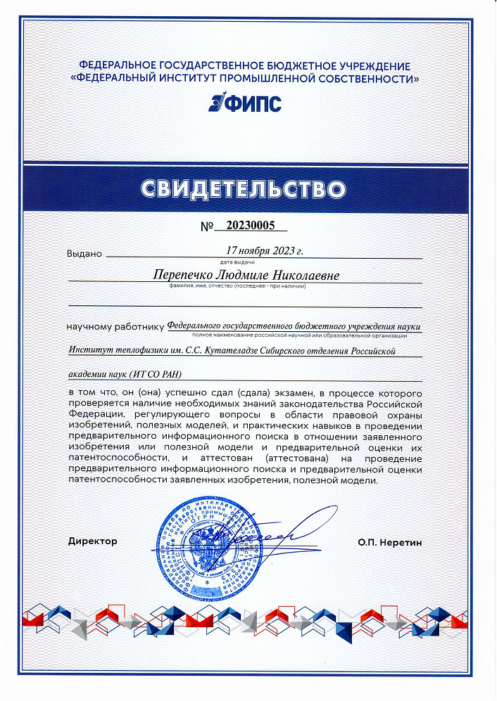 15 ноября 2023 г. Руководитель ЦТТ ИТ СО РАН Перепечко Людмила Николаевна, д.э.н. , сдала экзамен в целях аккредитации российской научной или образовательной организации в качестве организации, которая может проводить предварительный информационный поиск в отношении заявленных изобретений или полезных моделей и предварительную оценку их патентоспособности.