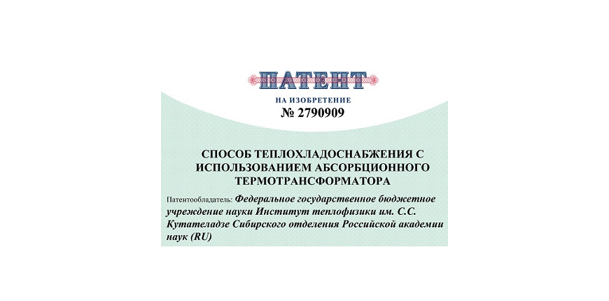Получен патент на изобретение "Способ теплохладоснабжения с использованием абсорбционного термотрансформатора"