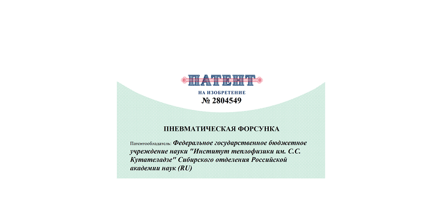 Получен патент на изобретение "Пневматическая форсунка "