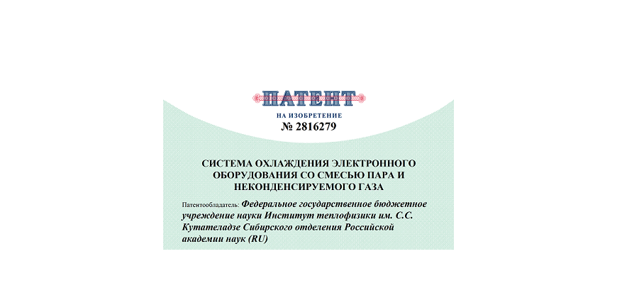 Получен патент на изобретение "Система охлаждения электронного оборудования со смесью пара и неконденсируемого газа"