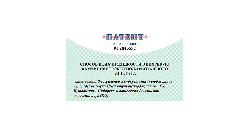 Получен патент на изобретение "Способ подачи жидкости в вихревую камеру центробежно-барботажного аппарата"