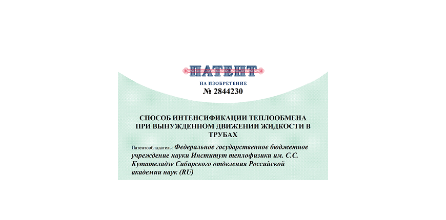 Получен патент на изобретение "Способ интенсификации теплообмена при вынужденном движении жидкости в трубах"