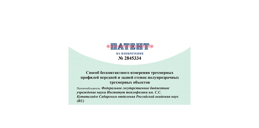 Получен патент на изобретение "Способ бесконтактного измерения трехмерных профилей передней и задней стенок полупрозрачных трехмерных объектов"