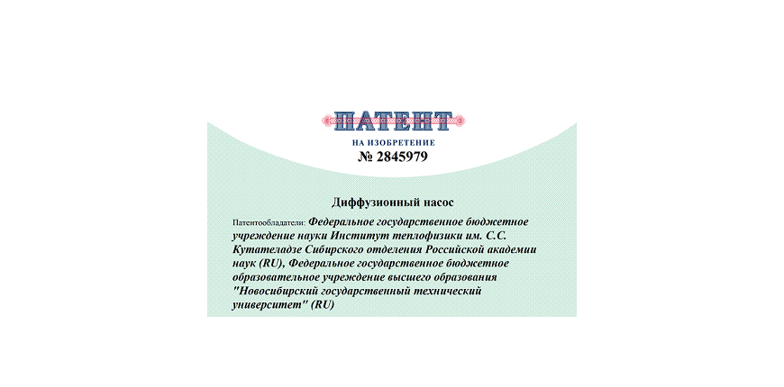 Получен патент на изобретение "Диффузионный насос"