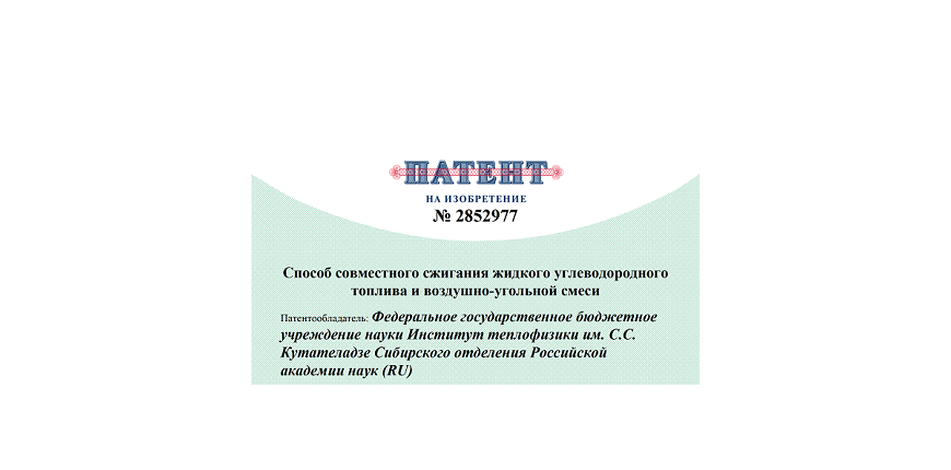 Получен патент на изобретение "Способ совместного сжигания жидкого углеводородного топлива и воздушно-угольной смеси"