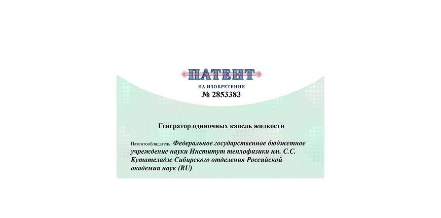 Получен патент на изобретение "Генератор одиночных капель жидкости"