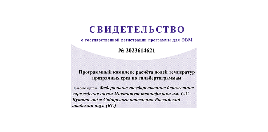Получено свидетельство о государственной регистрации программы для ЭВМ "Программный комплекс расчёта полей температур прозрачных сред по гильбертограммам"