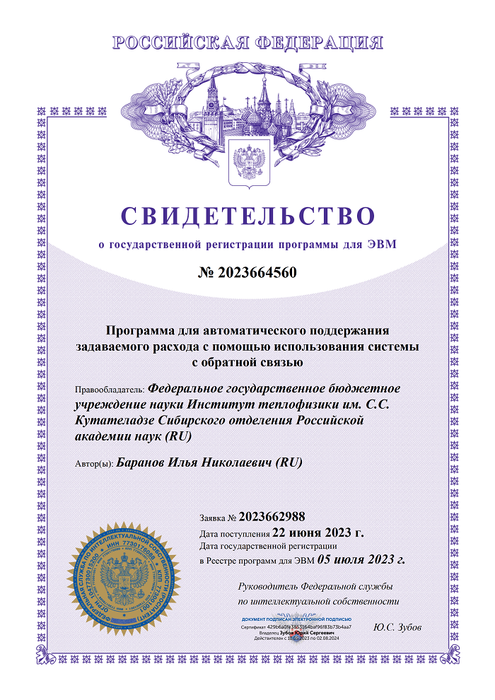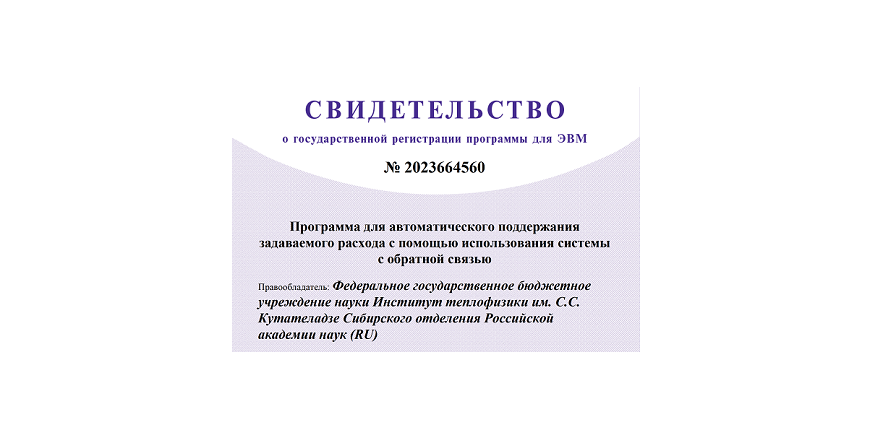 05 июля 2023 г. в Реестре программ для ЭВМ зарегистрирована "Программа для автоматического поддержания задаваемого расхода с помощью использования системы с обратной связью"