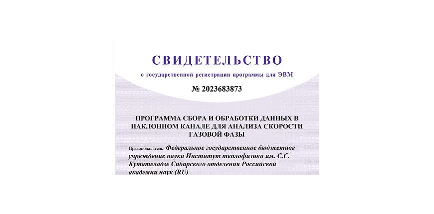 Получено свидетельство о государственной регистрации программы для ЭВМ "Программа сбора и обработки данных в наклонном канале для анализа скорости газовой фазы"