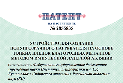 03 февраля 2026 г. в Государственном реестре изобретений зарегистрировано изобретение "Устройство для создания полупрозрачного нагревателя на основе тонких пленок благородных металлов методом импульсной лазерной абляции"